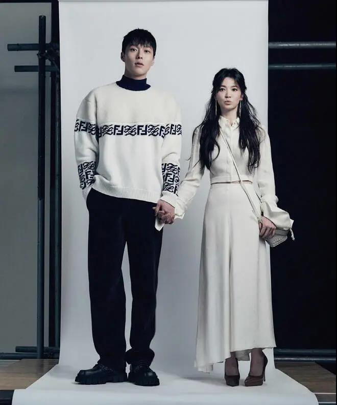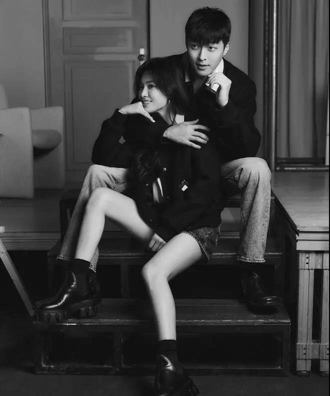 화보에서 송혜교와 장기용은 달달한 스킨십으로 현실 연인 같은 분위기를 연출했다. 송혜교를 백허그한 장기용은 볼에 입술이 닿을 듯 밀착한 포즈로 설렘을 유발했다.图中宋慧乔和张基龙甜蜜依偎在一起,看上去就像一对真情侣。张基龙从背后抱住宋慧乔,好像要亲上宋慧乔的脸颊,让人看了直呼心动。