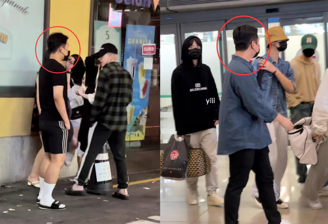2.同行男子为ENHYPEN经纪人,脚上拖鞋印有ENHYPEN官方LOGO