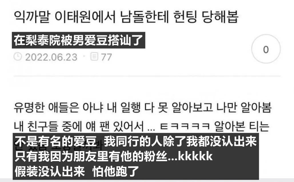 3.帖子评论中疑似被搭讪当事人在今年6月曾发帖有相似经历(已被证实为假,当日组合有行程且JAKE发色不同)