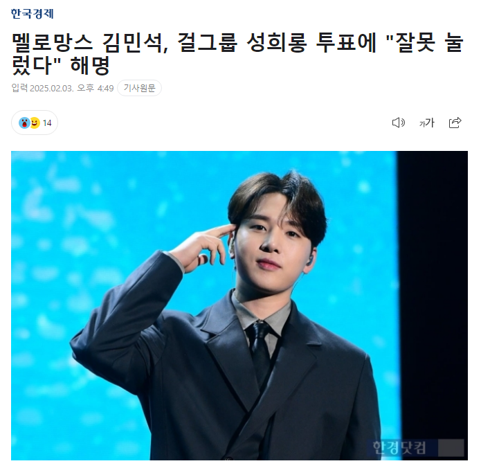 MeloMance成员金珉硕也因被发现曾于数月前参与过类似投票陷入舆论漩涡,他通过经纪公司道歉称:“发现自己按错后就取消了,很抱歉让大家担心了。”