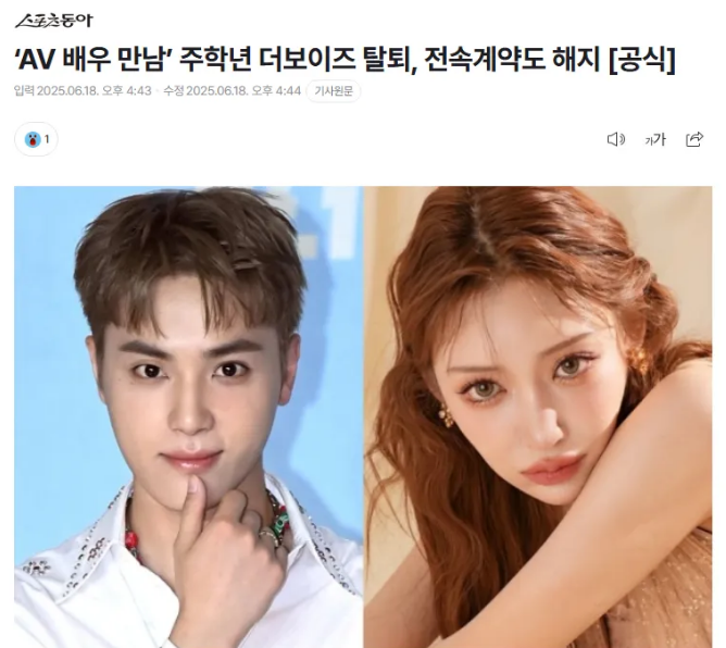 昨日,韩国媒体曝光了韩国男子组合THE BOYZ成员暂停活动的真正原因——酒吧密会前日本AV女优明日花绮罗,随后其经纪公司One Hundred宣布周鹤年退团及解约。