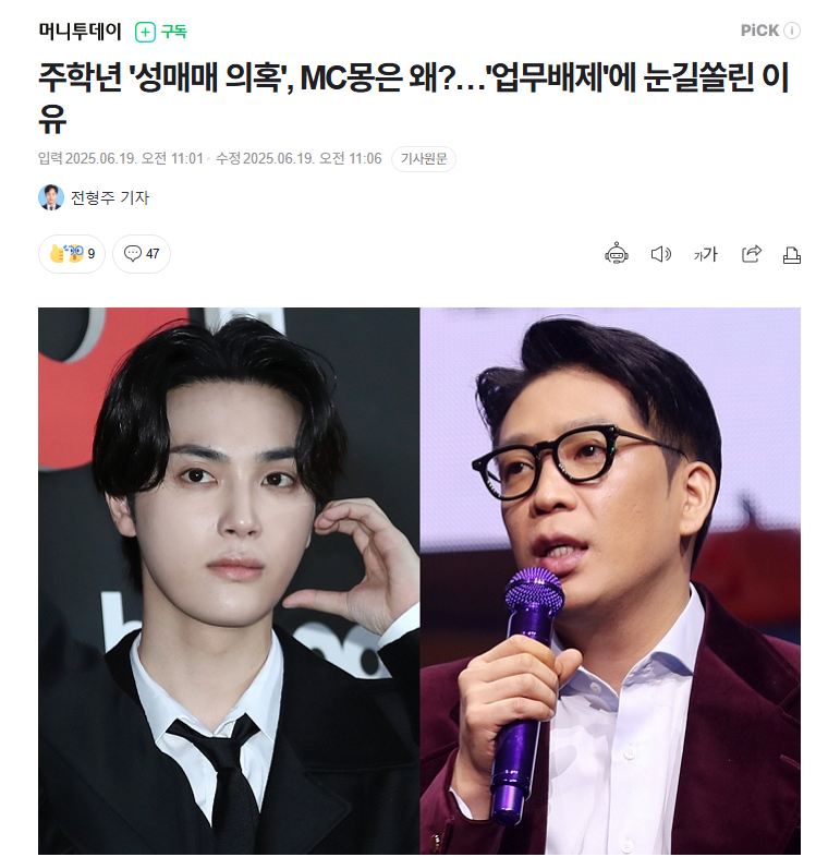 由于本月13日ONE HUNDRE曾发布公告称:“歌手兼制作人MC梦目前已被排除在公司业务之外”,所以网友们自然而然的认为媒体所说的牵连到性交易相关问题的制作人正是MC梦。