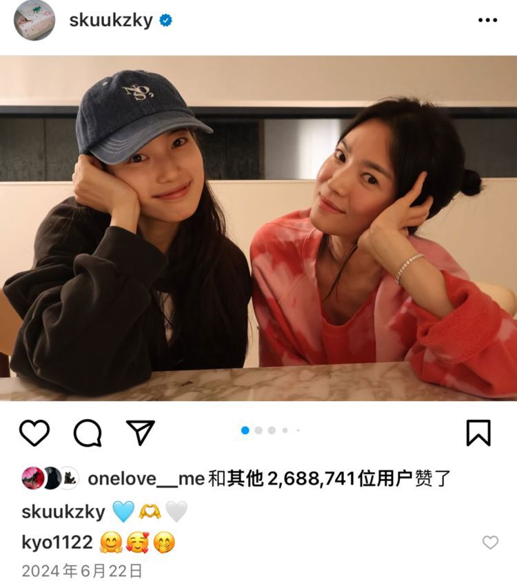 两人第一次发同框照是在2024年6月,当时秀智去了宋慧乔家里玩,两人互相拍了很多美照,看得出来两位演员非常喜欢和欣赏对方!