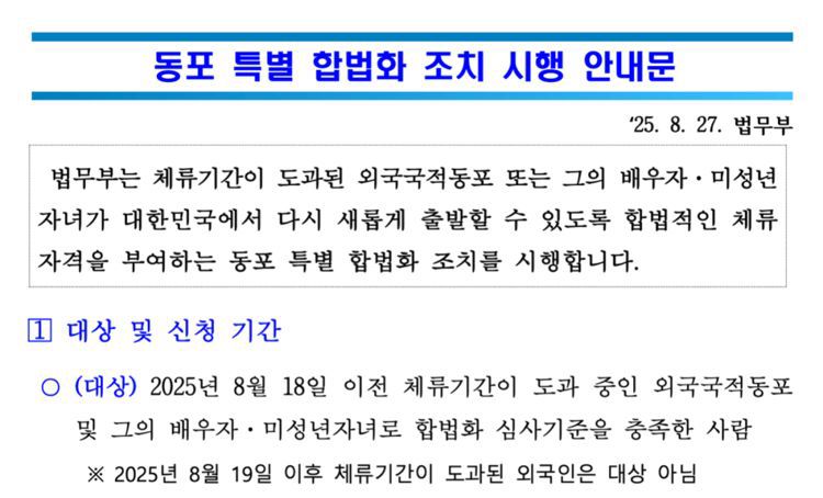 今日起,韩国法务部正式实施非法滞留者合法化政策。本次政策的对象是:朝鲜族及其配偶、子女。所以,汉族(包括其他民族)的非法滞留者只有曾经是F1或F3签证的朝鲜族的妻子或丈夫,以及25岁以下的未成年子女才能享受本次政策。再次强调,这次的非法转合法的政策不是普遍惠及给所有非法滞留者的,在阅读以下内容之前一定要看看本人是不是朝鲜族,是不是朝鲜族的配偶或子女。
