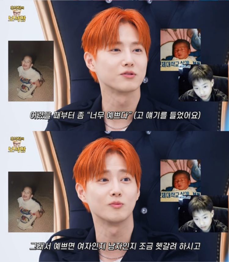 SUHO透露童年时常被周围人夸赞“这宝宝长得真的很漂亮”,甚至因为长相过于精致,还发生过让人难以分辨性别的趣事。