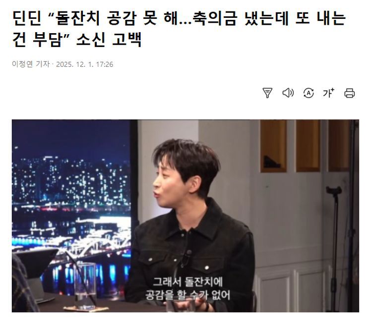 近日,韩国歌手DinDin坦率地表达了对孩子周岁宴文化的看法,继而引发了韩国网友们的大讨论。