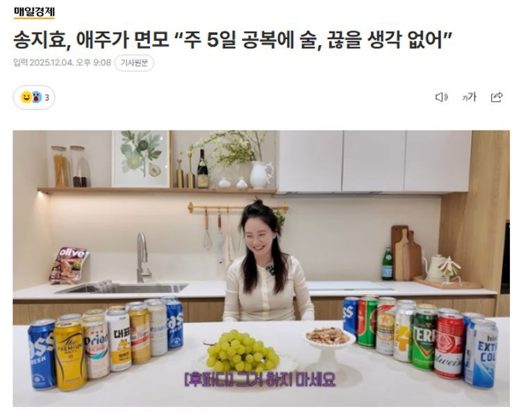 本月4日,宋智孝在自己的YouTube频道上传了标题为“没想过要戒酒吧?宋智孝:是的”的视频。