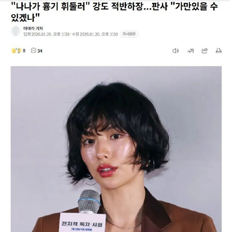 去年11月15日凌晨5点30分左右,韩国34岁男子A某闯入位于京畿道九里市峨川洞的演员NANA的住宅,用凶器威胁NANA及其母亲并索要钱财。NANA母女在与A某发生肢体冲突后将其制服,在此过程中,NANA受伤被诊断需33天治疗,其母亲需31天治疗,并提交了诊断书。