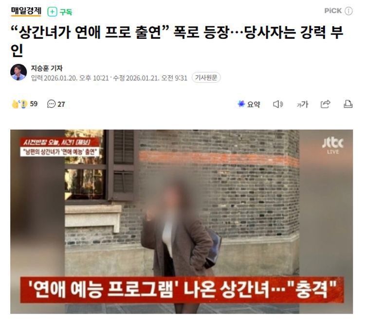 在本月20日播出的JTBC《事件班长》节目中,一位40多岁的女性举报人指认SBS恋爱综艺《子女放手计划——合宿相亲》(以下简称“合宿相亲”)中的女性出演者A某是介入并导致其婚姻破裂的当事人。