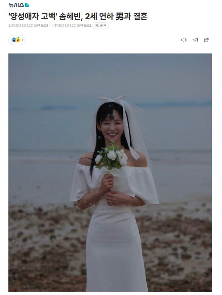 她介绍男友金艺勋(28岁)称:“他是与我怀着相同信仰生活、真心珍惜我,并始终以真诚的心带给我温暖与安宁的、散发着纯真气息的可爱之人。我与这样的艺勋将于二月的某一天,因爱而建立起一个在信仰中彼此扶持的家庭。”