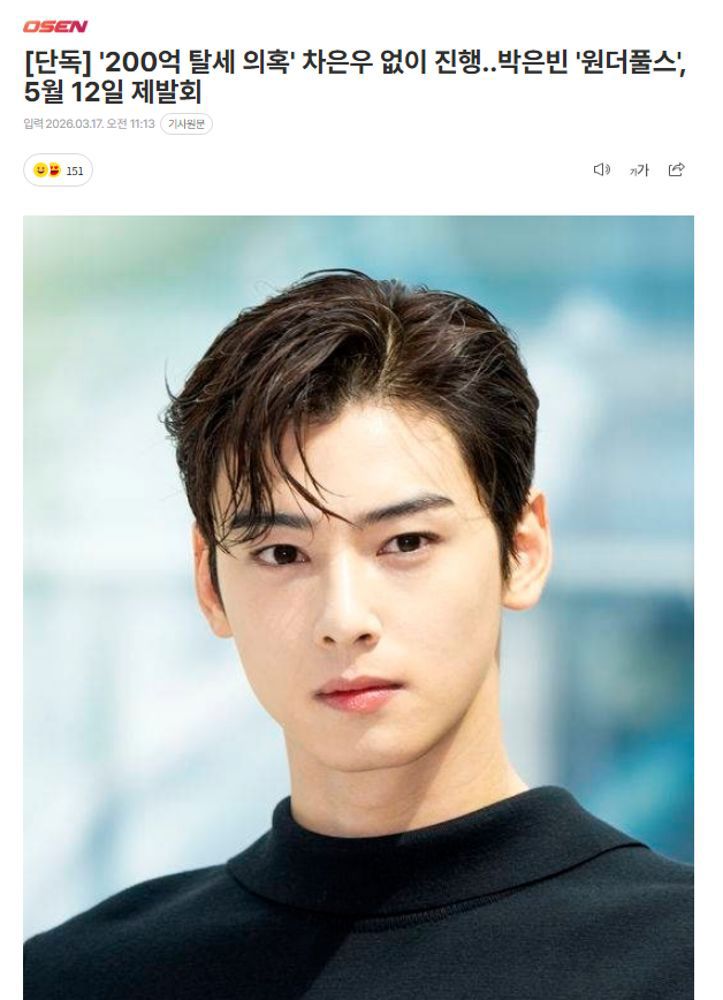 车银优于去年7月入伍前,因逃税嫌疑接受首尔地方国税厅调查4局的高强度调查,被追缴超过200亿韩元的税款,这是迄今为止对韩国艺人征收的最大规模追缴金。车银优方面在接到超过200亿韩元的追缴通知后,对国税厅的决定表示不服,申请了“课税前适当性审查”。