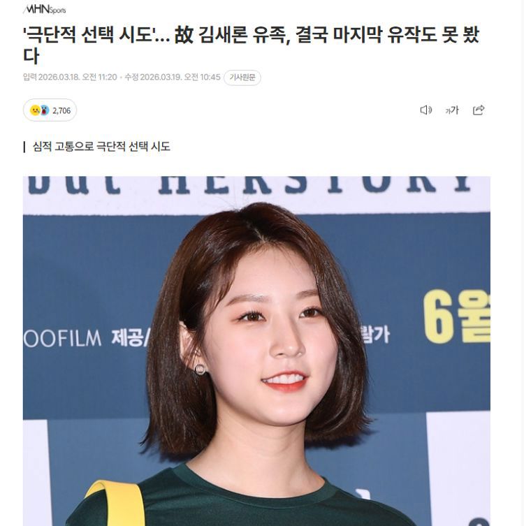 据韩国媒体报道,已故演员金赛纶的遗属因承受巨大的心理痛苦,试图做出极端选择。
