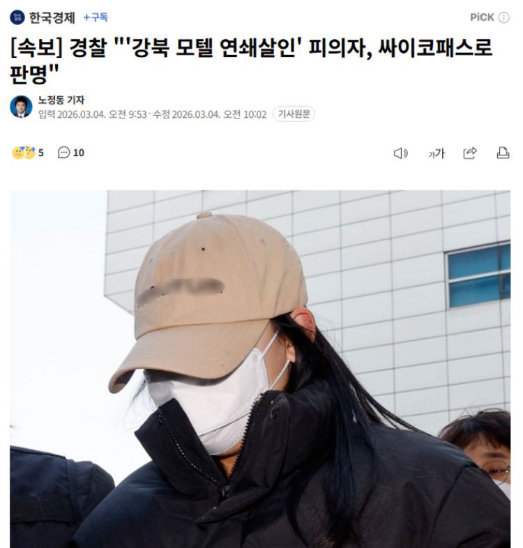 本月4日,首尔江北警察署公布了对金素英进行的精神变态诊断评估结果——她符合精神变态的判定标准。
