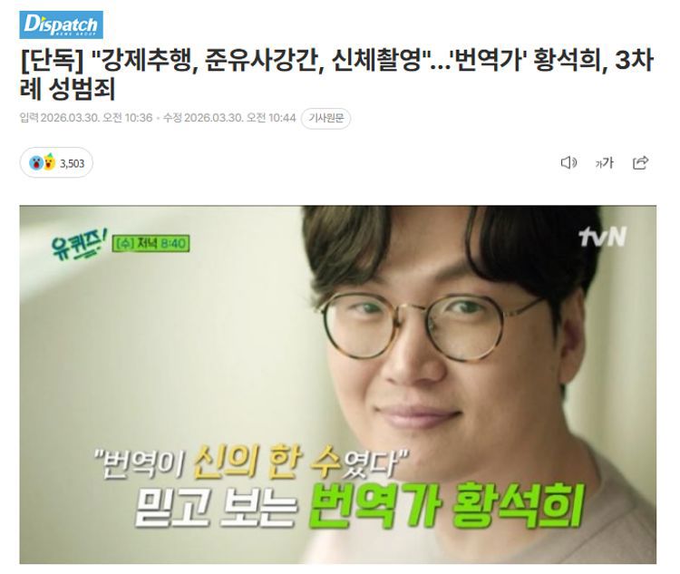今日,韩国最负盛名的电影翻译家黄锡熙被韩国媒体爆出性犯罪前科,曾以“温柔的翻译家”名号活跃在大众视野中的他形象彻底坍塌。