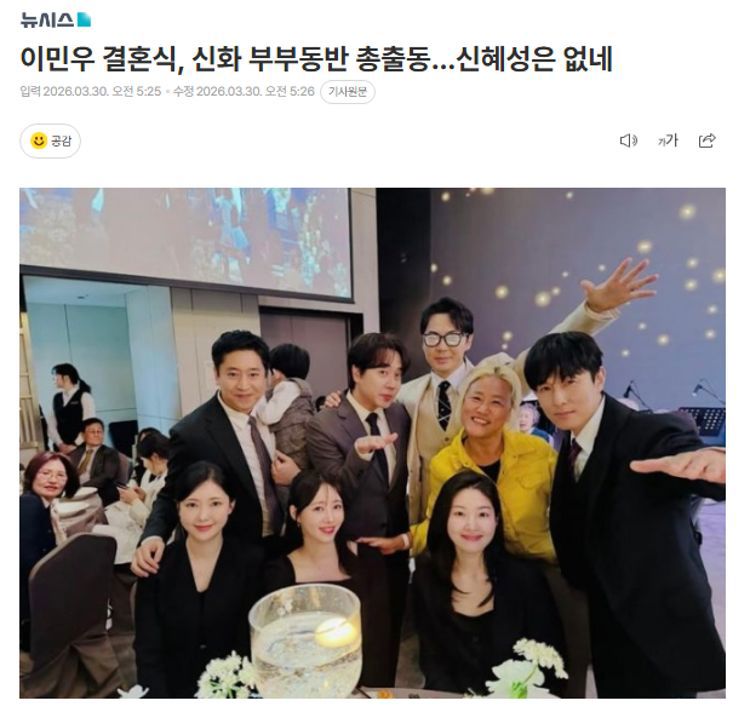 本月29日,韩国男子组合神话成员李玟雨与日籍韩国人李雅美在首尔某处举行了婚礼。